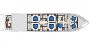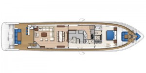 The latest Monte Fino Yacht concept design with large and long signature main deck windows lines running along each side of main deck. The large signature window design offers a sleek, and dynamic profile as well as bring in plenty of natural light for main deck saloon, dining and main deck mater area. Lower deck will accommodate up to four guest cabins and three crew cabins prefect for chartering. High / Low swim platform makes launching tender or jet ski easy with more fun from using this back deck area for water sports.