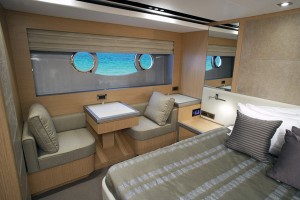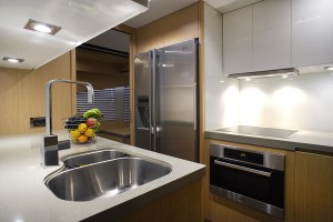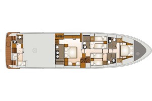 The F76 Flybridge is ideal for those who enjoy commanding their yacht from the expansive flybridge, which offers generous space for outdoor relaxation and entertainment. The aft deck seamlessly connects to the light-filled saloon, creating an open and inviting atmosphere. Forward, the galley and main helm station are positioned for privacy and ease of operation, with access for the crew to ensure the guests’ experience remains uninterrupted.