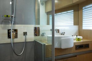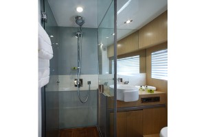 The lower deck is home to a luxurious full-beam master suite and three guest cabins, all with en-suite bathrooms. For added flexibility, the guest cabins can be configured with sliding berths. The crew quarters are located aft of the engine room, providing comfort and privacy for the crew.