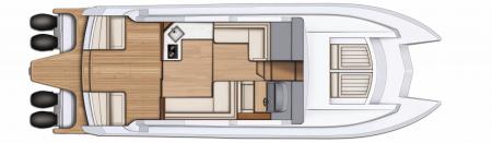 The Monte Fino 47 Cabriolet is a sleek, versatile power catamaran designed for those who love open-air living. Its spacious cockpit flows seamlessly into the interior, creating the perfect space for sunbathing, dining, and entertaining.