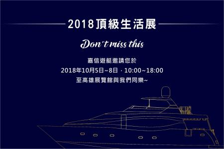 04 Oct, 2018Please come and join us at 2018 Super Leisure Lifestyle show at Kaohsiung Exhibition Center. The four days show will start on 5th of October and end on Monday, 8th of October. Monte Fino C45 MY will be on display and is the only yacht on display at the show. Look forward to meet with you to discuss yacht chartering and liveaboard diving trip around Taiwan with Monte Fino Yachts Charter fleet or buying a new Monte Fino. For more info., please visit exhibitor’s website http://www.slls.com.tw/