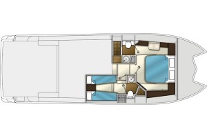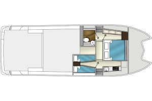 The Monte Fino C45 SF is a sport fishing catamaran that blends performance, comfort, and practicality. Its flybridge layout with a rear helm station provides excellent visibility and direct communication with anglers on the aft deck.