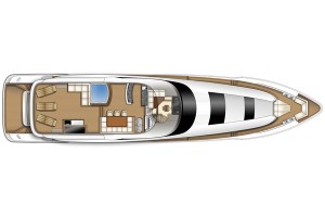 開闊的飛橋甲板,配備日光浴區、吧檯與多組座位,是戶外社交與放鬆的絕佳場所。該船型設有大型艇庫置放空間,可放置小艇與各式水上娛樂設備,隨時享受海上探險樂趣。